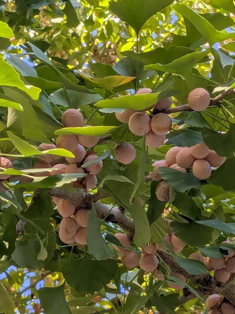 今年も東門の大イチョウが沢山の銀杏の実を付けてくれました。